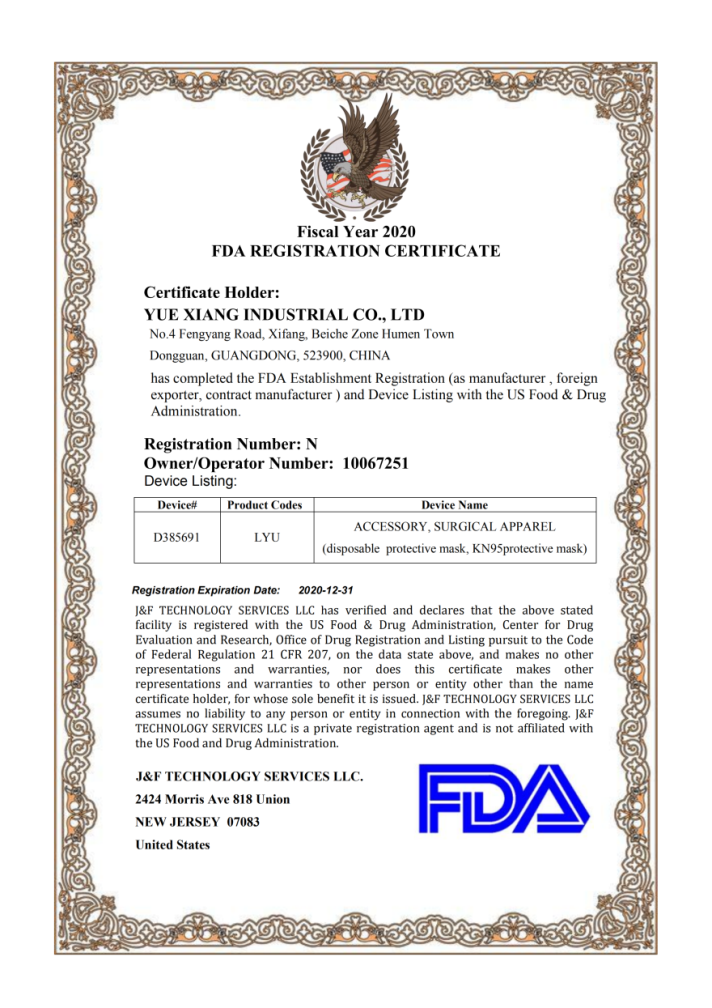 恭祝東莞市越祥實(shí)業(yè)有限公司在創(chuàng)思維驗(yàn)廠之家輔導(dǎo)下通過(guò)FDA及CE認(rèn)證