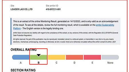 在創思維驗廠網老師專業技術、全程跟進耐心細致輔導以及公司全體員工配合下,一次性順利通過ITS-BSCI驗廠并取得B級合格報告,為將來公司發展奠定了良好的發展基礎,既開拓了市場同時也增加了消費者對公司的信賴,在這里再次祝賀老撾工廠LEADER LAO CO,LTD 2023年一次性成功通過ITS-BSCI驗廠并取得B級合格報告,同時也期待未來再次與創思維驗廠網合作!