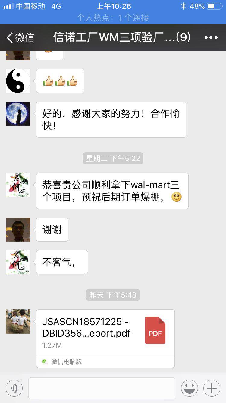 祝賀信諾運(yùn)動(dòng)用品有限公司順利通過(guò)Wal-Mart三項(xiàng)驗(yàn)廠(chǎng)!